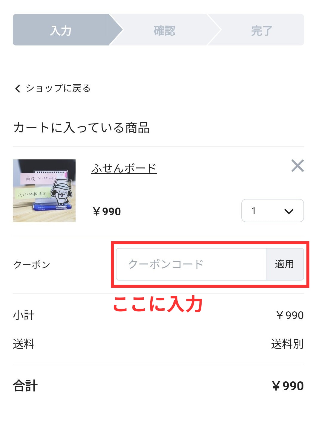 A. クーポンコードは、商品を選択後のカート画面で入力してください。